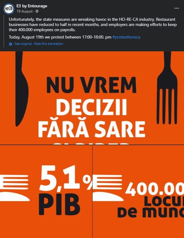 Managerii, antreprenorii și angajații din domeniul ospitalității au ales să fie uniți în această perioadă de încercare și să se sprijine reciproc. Au participat împreună la protestul organizat de HORA, dar s-au și recomandat unii pe alții, urmând exemplul pozitiv setat de lanțul Burger King.
